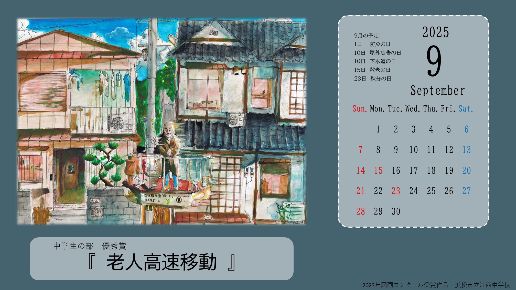 「わたしの“未来のまち”はこんな“まち”」図画コンクール2023の受賞作品を使用した令和7年6月のカレンダーになります。