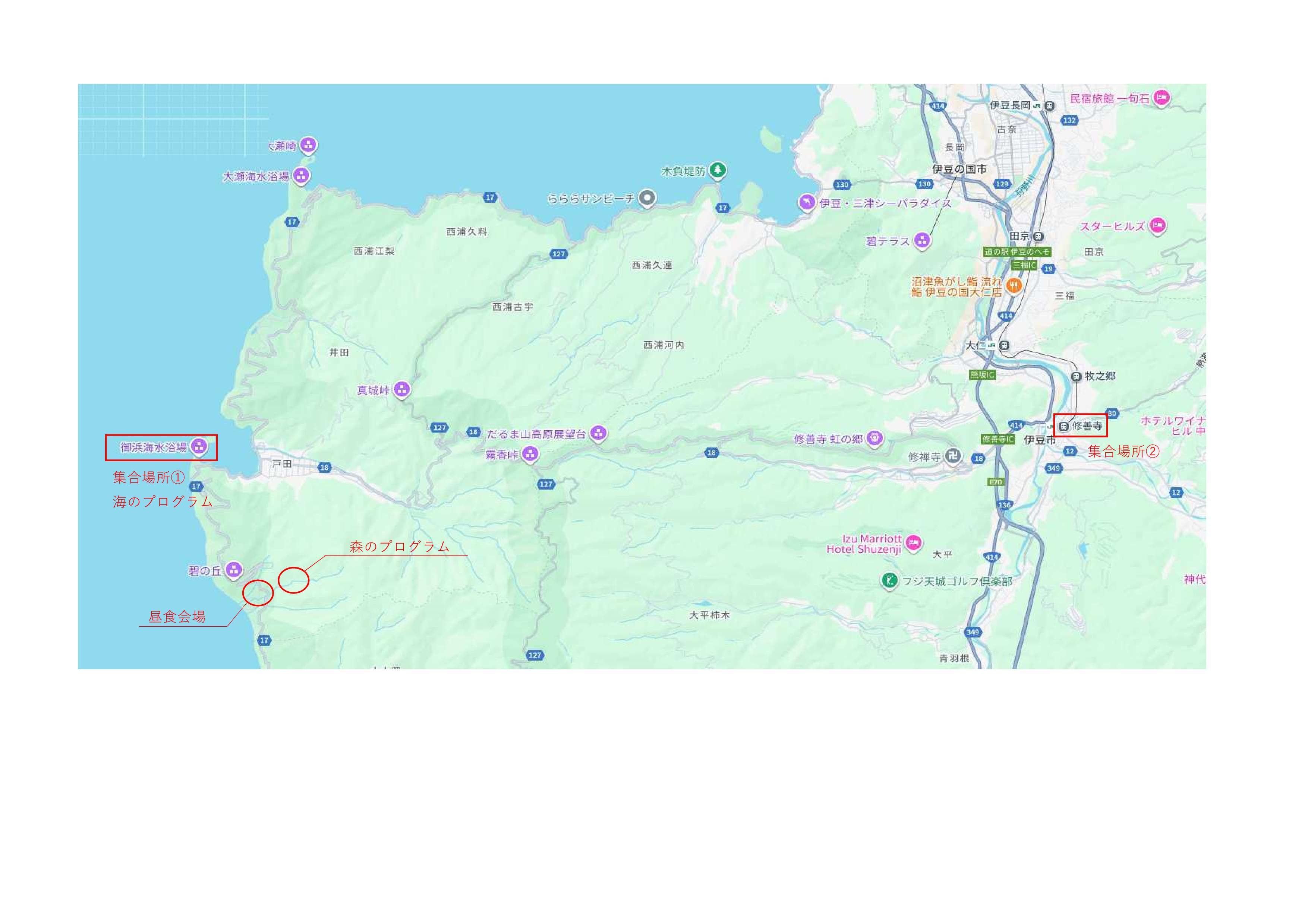 受付(御浜海水浴場駐車場)または9時15分修善寺駅集合